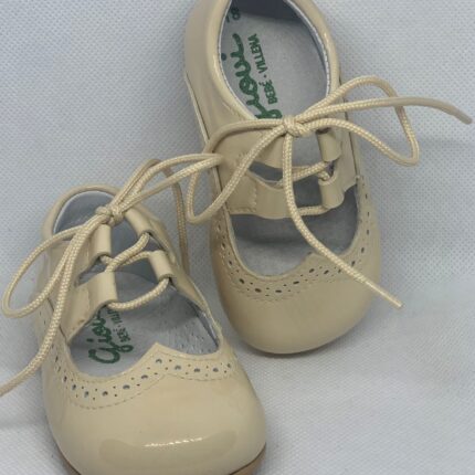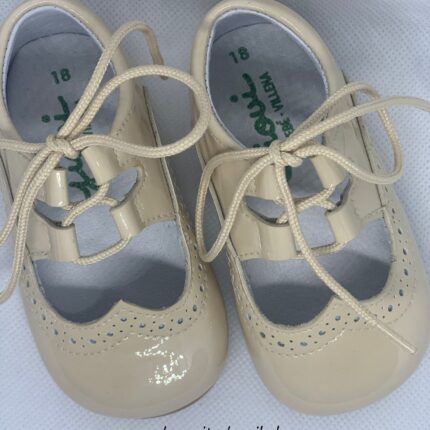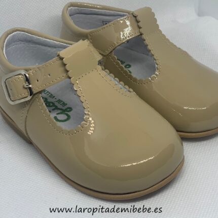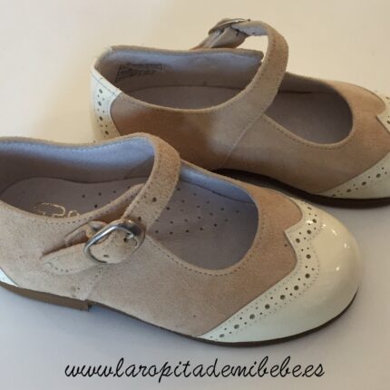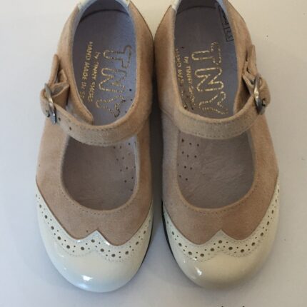 Zapato mercedita niña charol y ante Tinny Shoes.
