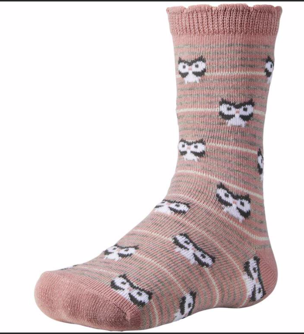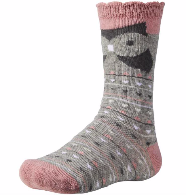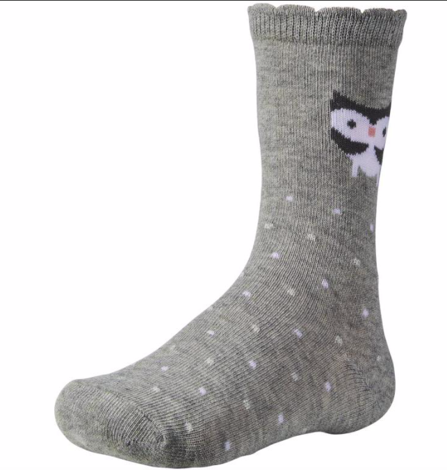 Calcetín fantasía para niña de algodón. Simpáticos búhos ilustran estos calcetines de diseños en colores grises y rosados. Los detalles en hilo de plata los convierten en el accesorio perfecto para sus primeros outfits. Con puño especial anti presión para mayor comodidad.