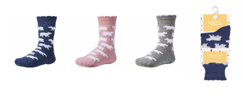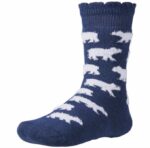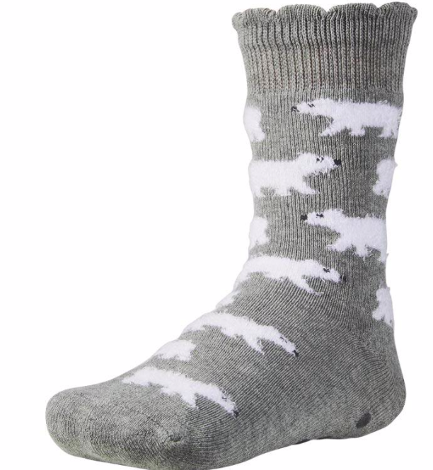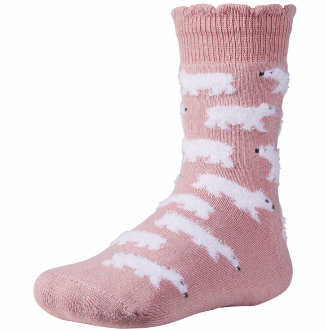 Calcetín fantasía térmico para niña. Osos polares sobre fondo liso en azul, rosa y gris. Su puño especial anti presión con suave acabado aporta comodidad y estilo. Aplicaciones de silicona en la suela para una mayor adherencia al suelo y confort.