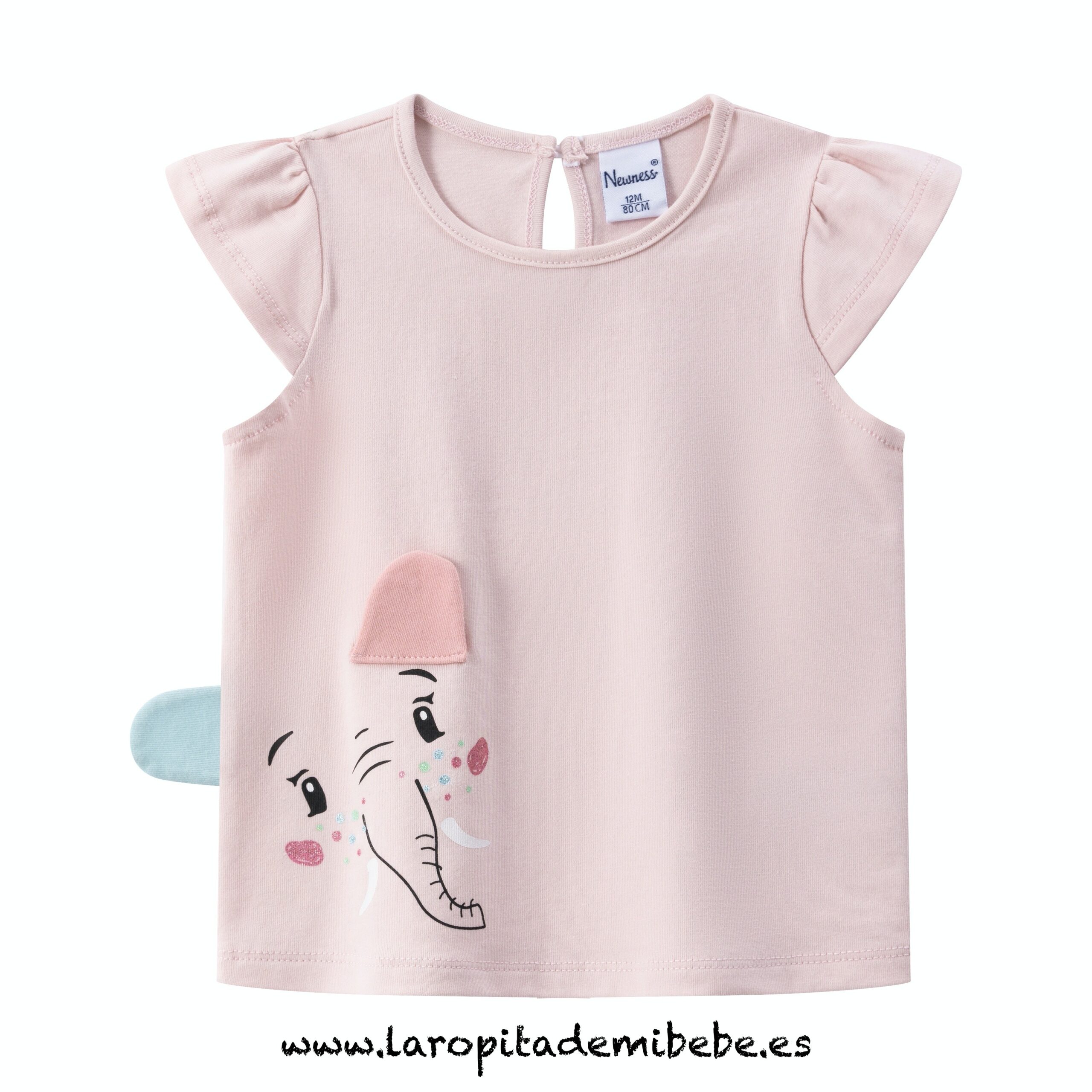 Camiseta de manga corta, con detalle de elefante divertido, cierre con botón en la parte trasera para facilitar la puesta de la prenda Color Rosa