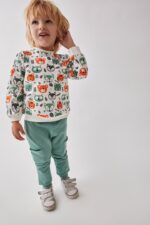 Conjunto de dos piezas para recién nacido niño de 1 a 24 meses. La sudadera blanca está adornada con un estampado completo de animales en tonos verdes y naranjas, proporcionando un diseño alegre y llamativo. Confeccionada con un tejido suave y cálido, la sudadera incluye un cuello redondo y ajuste en los puños. El pantalón a juego en color verde presenta bolsillos laterales y una cintura elástica para un ajuste cómodo y seguro. Este conjunto es perfecto para cualquier ocasión, manteniendo a tu bebé abrigado y con estilo. Composición95% Algodón 5% Elastano