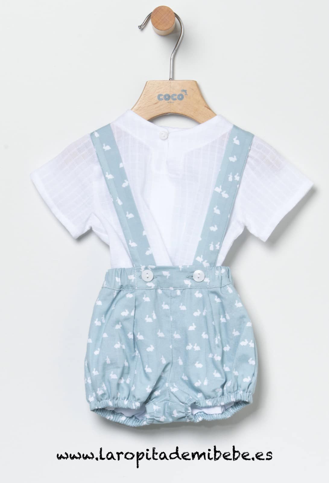 Conjunto de conejitos en verde agua con camisa y braga de la colección Primavera/Verano de Coco Aqua.