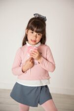 Conjunto de sudadera y falda-pantalón.Sudadera de felpa en rosa. Volante en cuello y bajo de plumeti blanco. Estampado con Scooter en el pecho. Falda pantalón de felpa en azul petróleo.Composición:  60% Algodón,31% Poliéster,4% Lycra,5% Otros materiales
