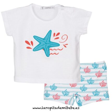 Conjuntos de niña de baño, compuesto de camiseta y culetín, de la nueva colección Primavera/Verano 22 de Calamaro. Composición: 100%ALGODON 80%POL.20%ELAS