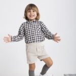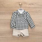 Conjuntos Pantalón Corto Con Camisa Cuello Pico de cuadros en color Unico de manga larga fabricado en tejido de algodón 100%