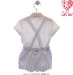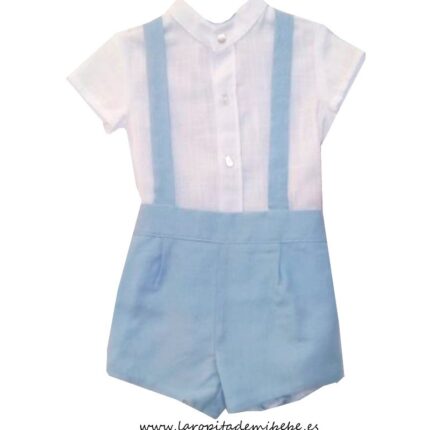 Conjuntos de niño de dos piezas con camisa y pantalón en rayas celeste y blanco, de la colección de Verano de Del Sur