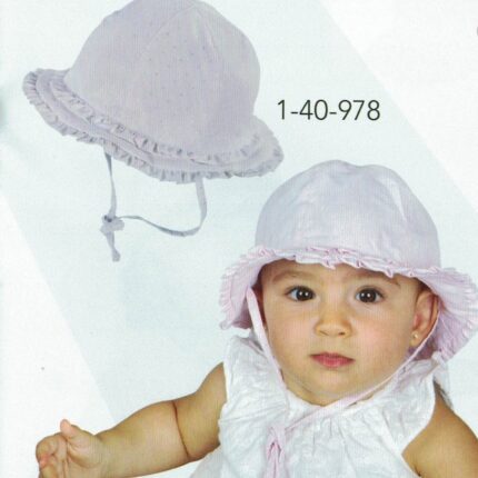 Precioso gorro de Manufacturas Miralles. Gorro unisex, con volate de rayas.