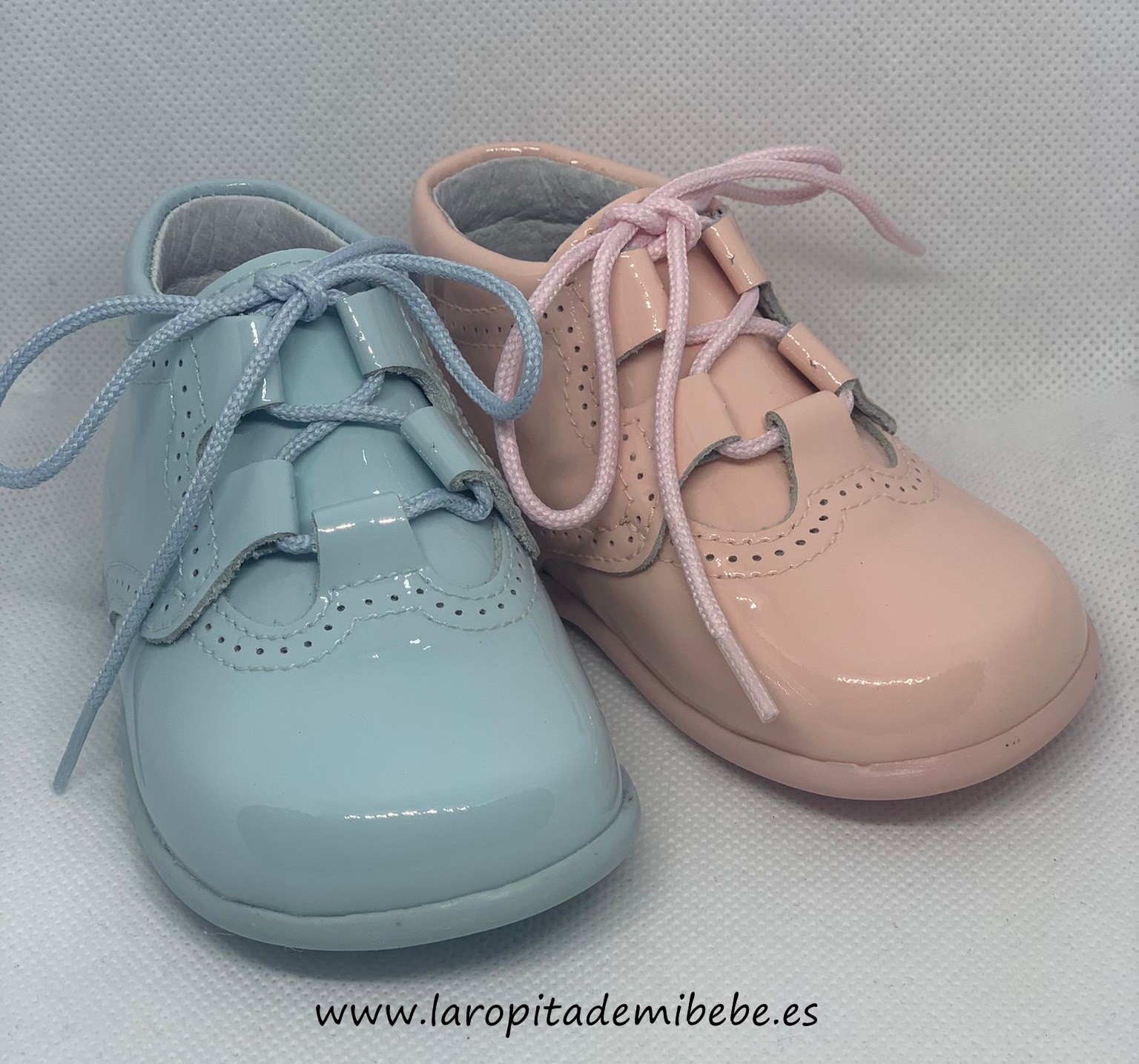 Zapato mercedita niña charol y ante Tinny Shoes.