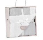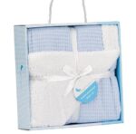 Manta nido de abeja con borreguillo, color azul.Suave manta para bebés con dos texturas diferenciadas, lado está terminado con uneleganteacabado en nido de abeja,y agradable al tacto.Y un reverso extra cálido de borreguillo que mantendrá al bebé calentito los días más fríos. La manta está fabricada en microfibra de última generacion y podrás usarla en la cuna, para arropar al peque cuando salís de paseo, dentro del coche en los viajes, Además es un regalo, bonito, util y práctico para los recién nacidos. Incluye : una manta nido de abeja con borreguillo. Características:Medidas: 80x110cm Composición: microfibra. Te recomendamos que sigas atentamente las instrucciones de lavado.