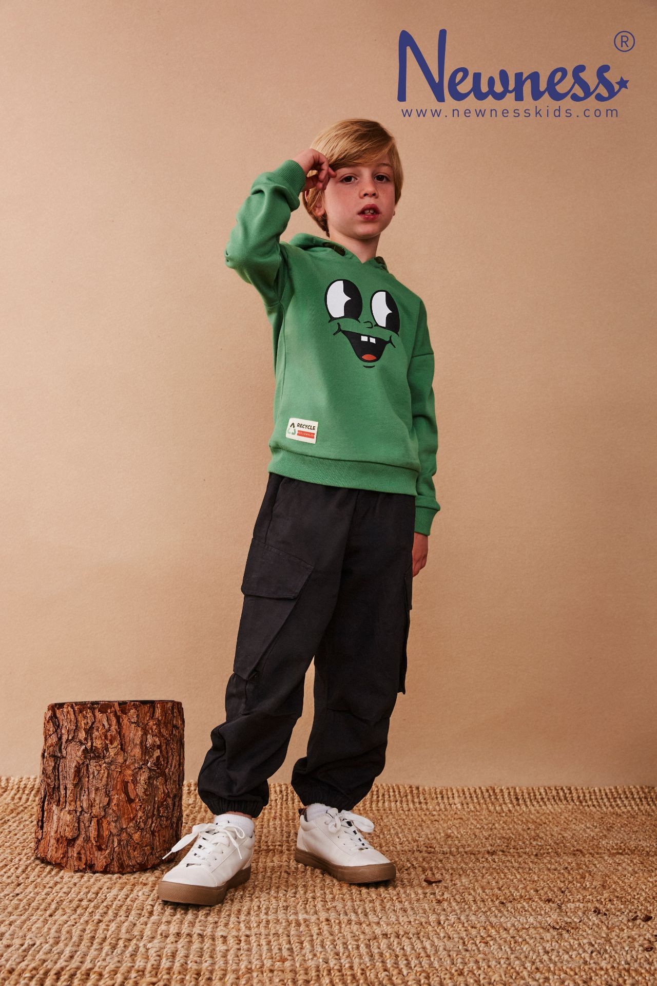 Pantalón cargo tejido técnico de niño. Cinturilla y puños con goma elástica interior. Bolsillos laterales con solapa.