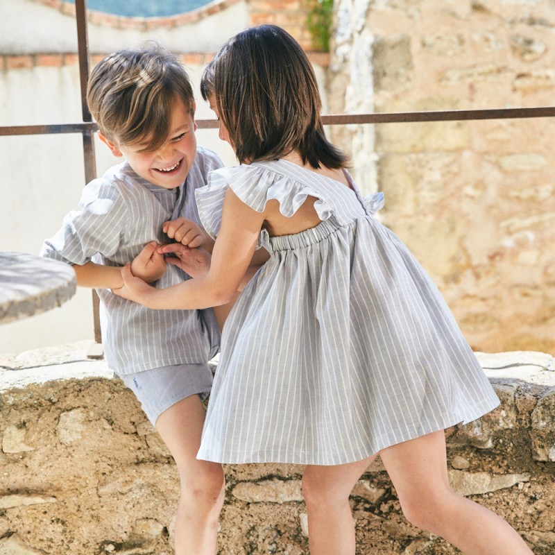 Vestido de niña de Babidu de rayas. COMPOSICIÓN: 100% ALGODÓN. CUIDADOS: Lavar a máquina – agua fría (30 ° max).