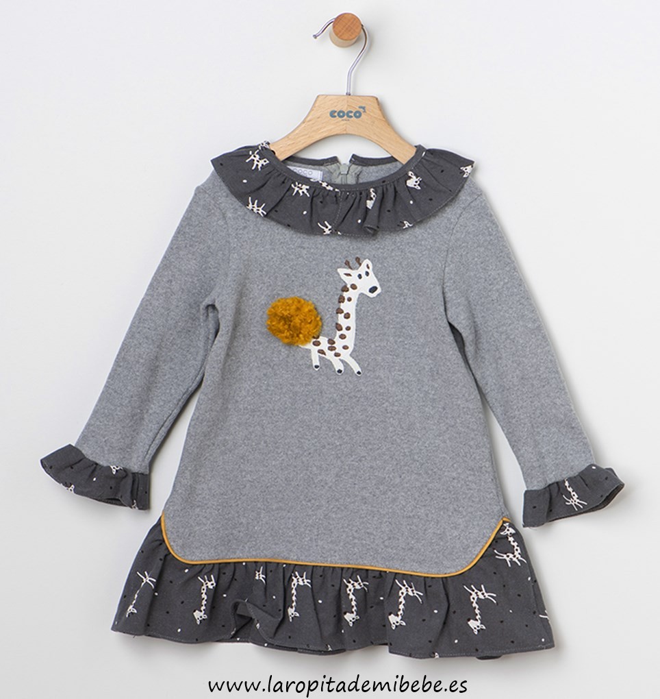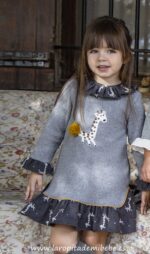 Precioso vestido de la temporada Otoño-invierno, de Coco Aqua, de punto con detalles en tejido con jirafa bordada.