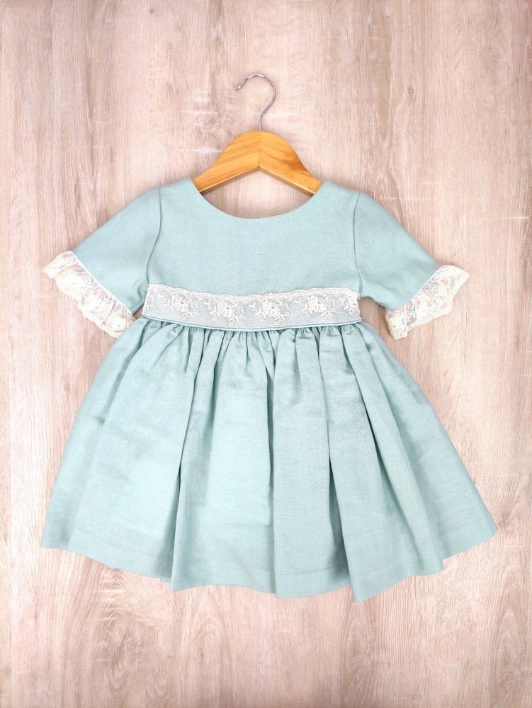 Vestido niña lino verde AnaCastel